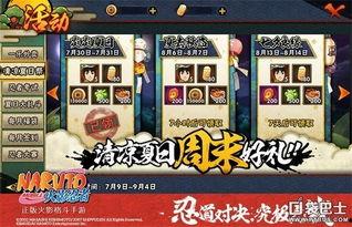 为了庆祝八月版本的到来,官方将举办一系列活动,为玩家们带来丰厚的福利。比如,登录活动、签到活动、挑战活动等,玩家们可以通过参与这些活动获得大量游戏币、忍者碎片、道具等丰厚奖励。此外,还有机会获得限定忍者,让你在战场上独领风骚!